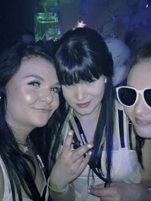 Hajoon tähän! Näytän aivan ufolta - noi aurinkolasit on hämmentävän näköset. Nää on suhteellisen alkuillasta vielä, loppuillasta olin niin nätti, että vaikka neiti oiskin yrittäny ottaa kuvaa niin en olis antanut. Huh huh.. Nättiä